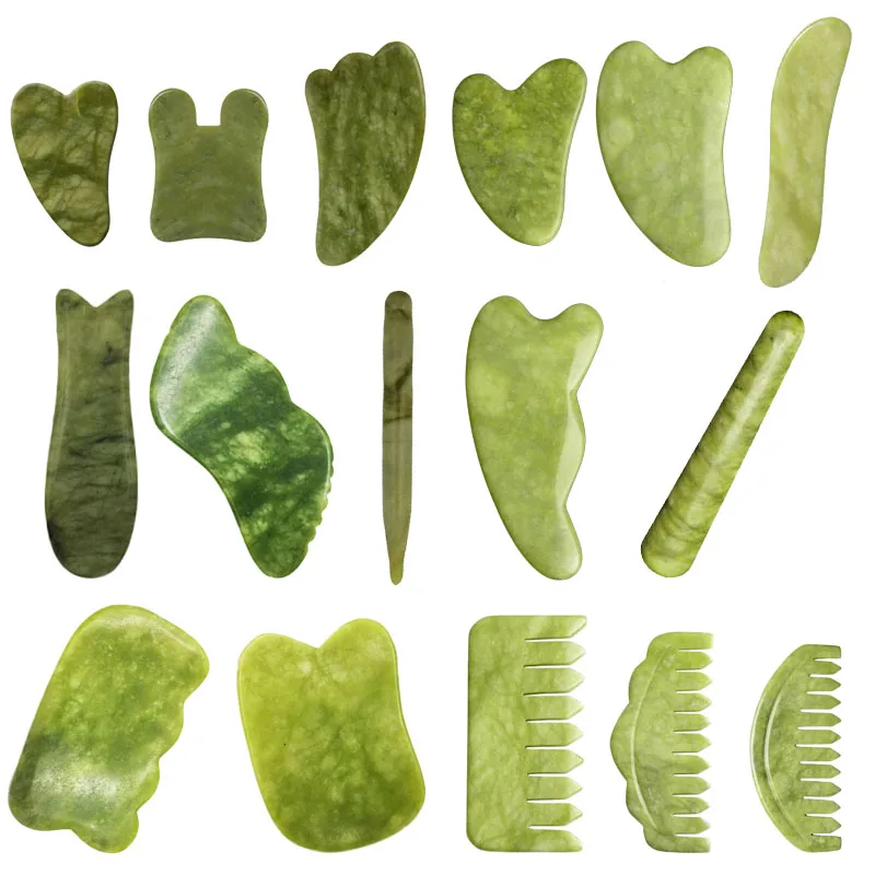 Natural Jade Stone Guasha Board Gouache Scraper for Body Acupoint Press SPA Acupuncture Skin Facial Care Massage anti Aging Tool
